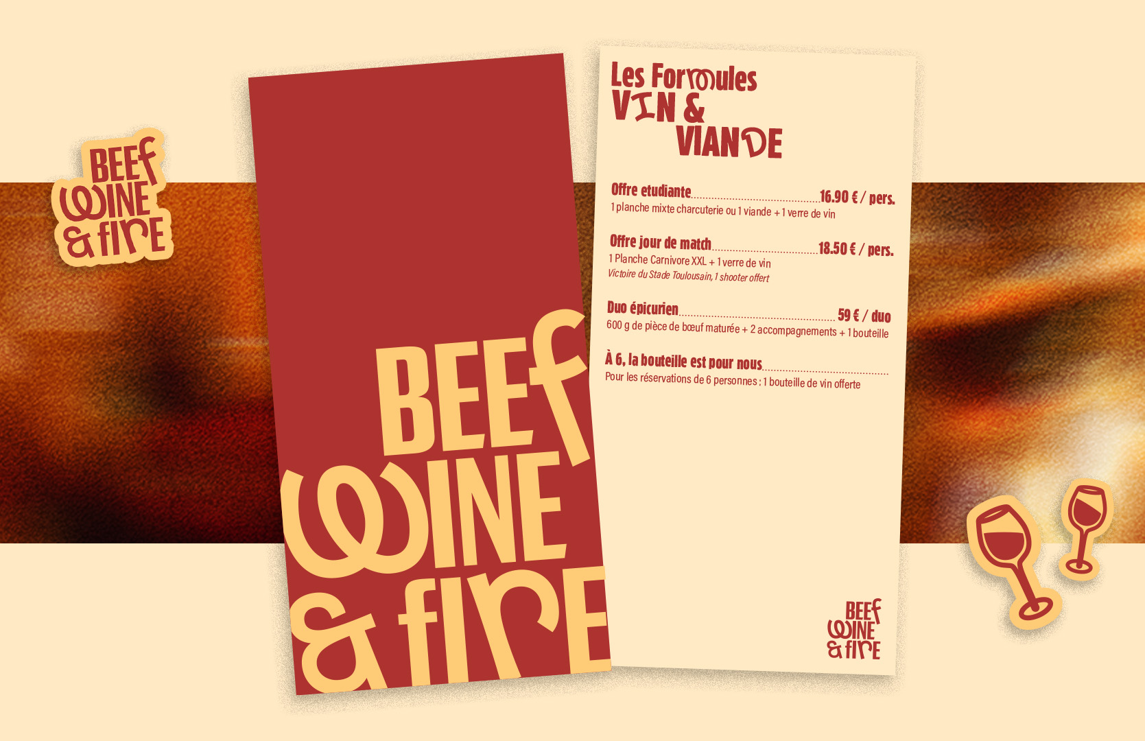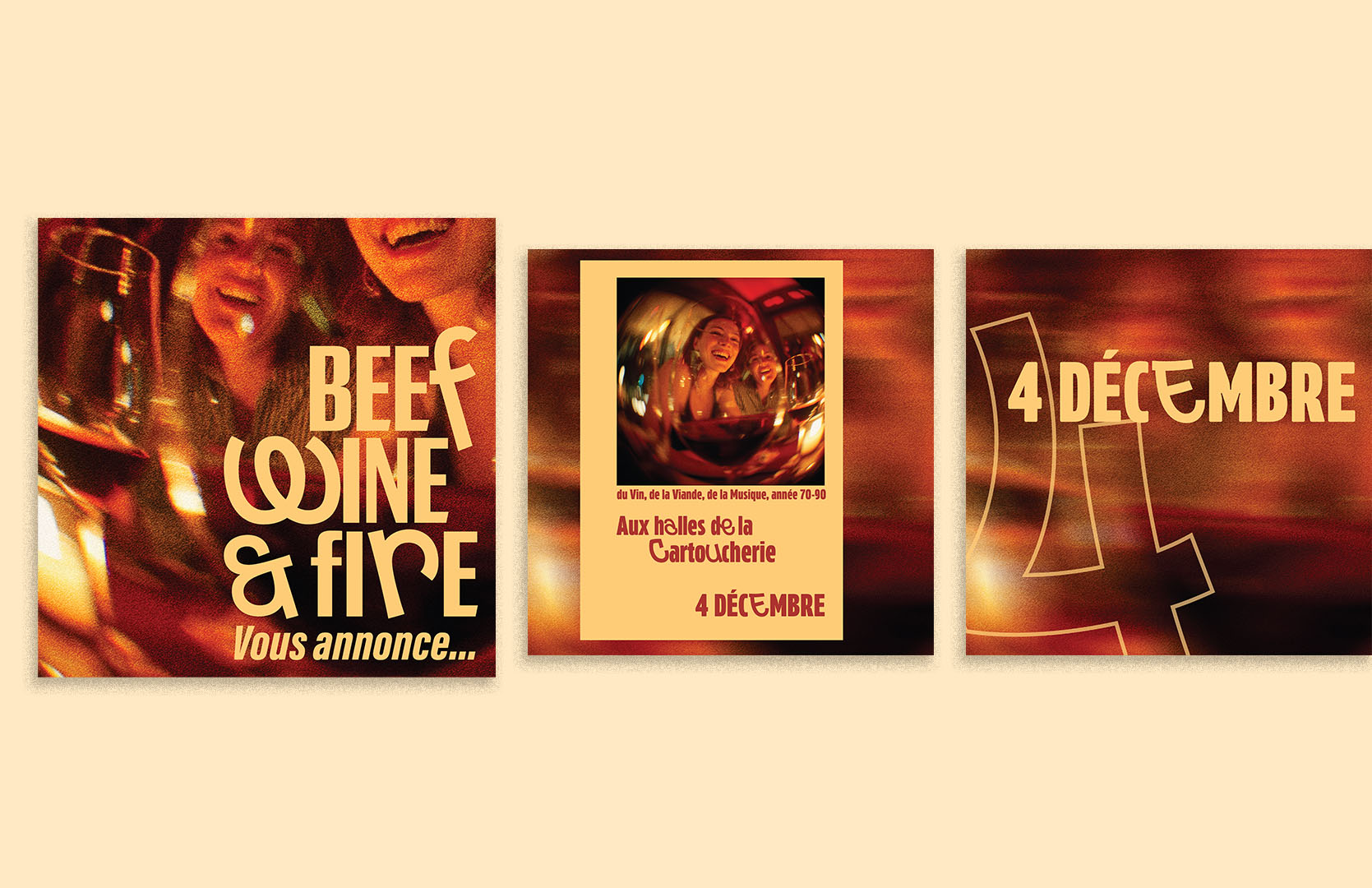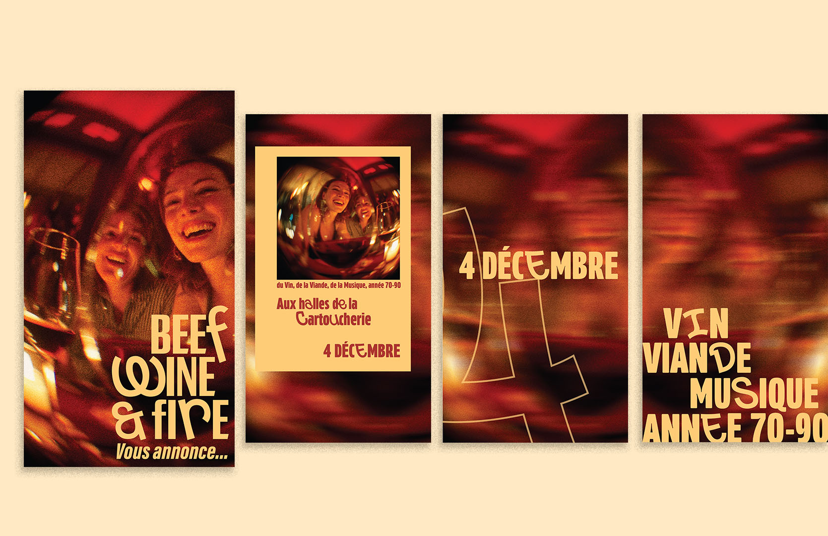 Création de l’identité visuelle complète d’un événement festif mêlant grillades, vin et musique au cœur des Halles de la Cartoucherie à Toulouse.